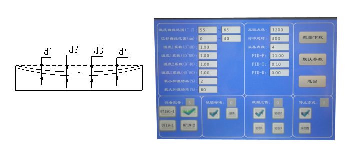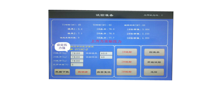 4、碾轮与试模接触压强: (0.7±0.05)MPa(60℃时),可调范围0.5~1.2(MPa)