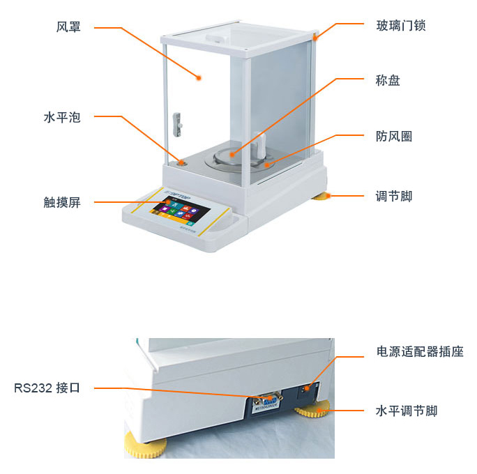 上海舜宇恒平AE223C/AE323C/AE523C触摸式彩屏内部校准电子天平