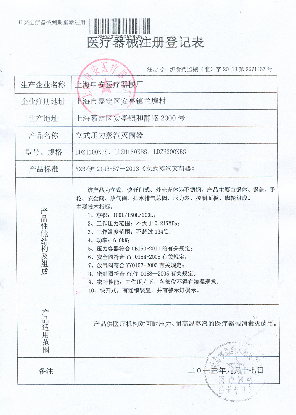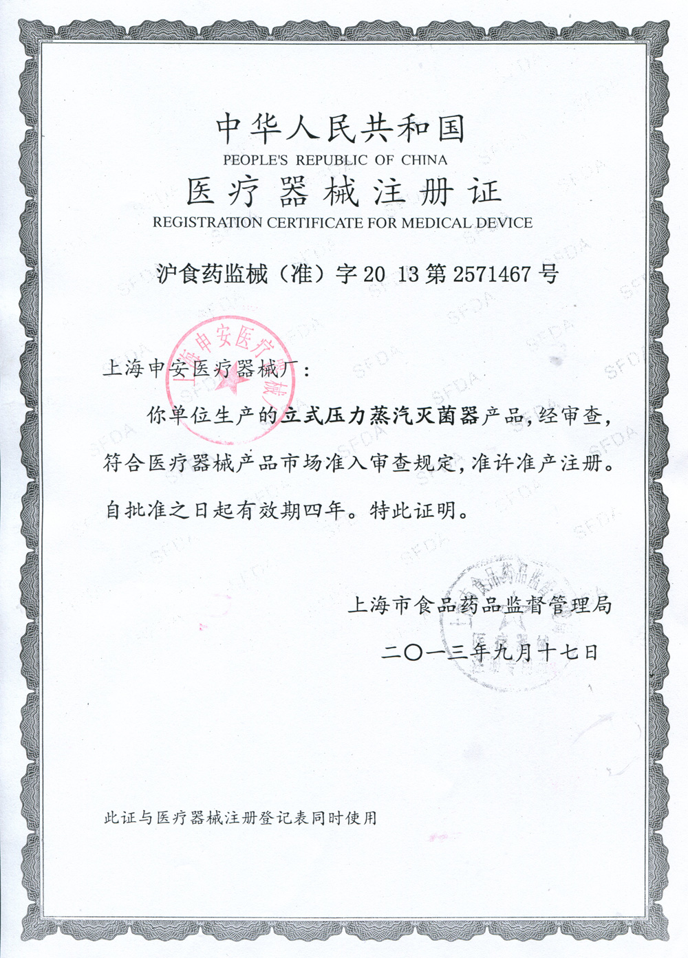 沪食药监械(准)字2013第2571467号